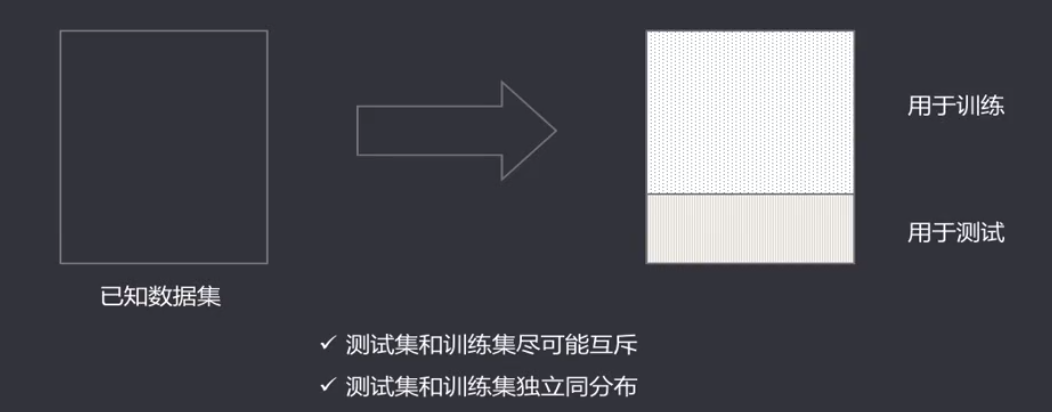 • 数据集拆分成两部分,每部分的规模设置回影响评估结果,测试、训练的比例通常为7:3、8:2等