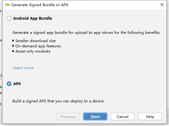 - 在Android Studio菜单栏中,Build —> Generate Signed APK: